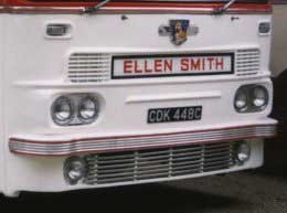 Although the front panels differed from body to body depending on the type of destination display fitted, the Cavalier (left) was usually instantly recognised by its strong "smiling" moulding across the front. The Grenadier was perhaps a little too fussy but this is a matter of taste. At the beginning of this piece I wrote that the front was a very bad place to look to tell the difference between the two. This is because for various reasons this panel could be inter-changed to the other model. I am not sure that Harrington entirely liked doing this however precedents had been set on other models previously. Southdown in particular were always quite fussy about presenting a uniform appearance and when a batch of Grenadiers were purchased in 1964 they were fitted with Cavalier front panels. Similarly, there was always a small demand for vehicles that were only 7 feet 6 inches wide and Cavaliers purchased by Grey Cars had Grenadier style fronts. I suspect one reason for this would have been because the Cavalier front moulding did not look totally successful on a vehicle less than 8 feet wide, since the conventional way of dealing with small runs would be to cut out a section in the middle and join the two halves.