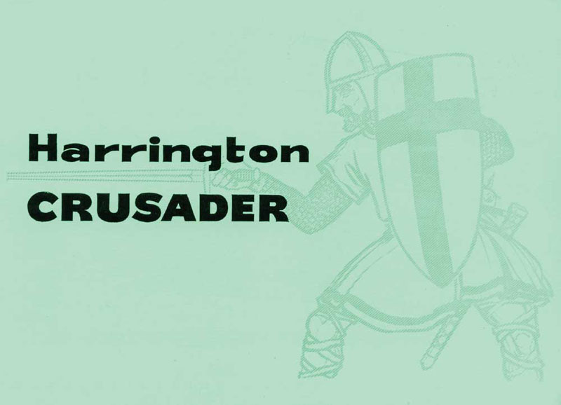 Crusader on Bedford chassis The Crusader mark 1 was introduced at the 1958 Commercial Motor Show and was an interesting styling watershed. It drew heavily on the general styling of the still current Wayfarer Mk4 but at the same time displayed many of the features that barely a year later would be drawn together harmoniously into the Harrington Cavalier. There is no doubt that the Cavalier, yet to be announced at this time, was one of the most important new coach designs of the era both for Harrington and coaching in general. The Crusader has been largely ignored by transport historians but has its place as the link between Harrington's production in the 1950s and the new decade.
