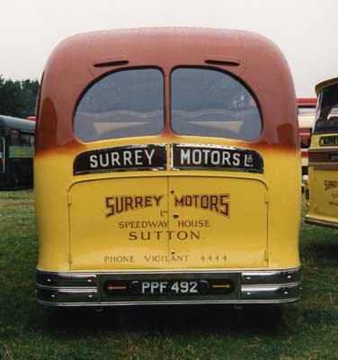 JYC 855 has the patent dorsal fin that had first appeared in 1935, although at that time it confined itself to the roof area and did not split the rear window. Although one of the early reasons given for the fin was that it enabled headroom at the rear of the coach, by the post war years the coaches were generally made higher anyway and this was not so important. However the ventilation louvres are visible and PPF 492 shows the alternative arrangement when the fin was not fitted.