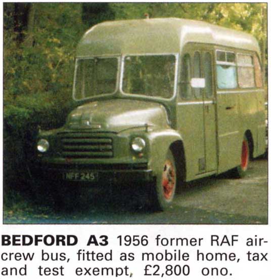 Large numbers of these Bedford crew carriers were bodied by various manufacturers for use by the RAF. NFF 245 was advertised for sale in 2004 as seen above and has subsequently been advertised again in December 2005 repainted green.