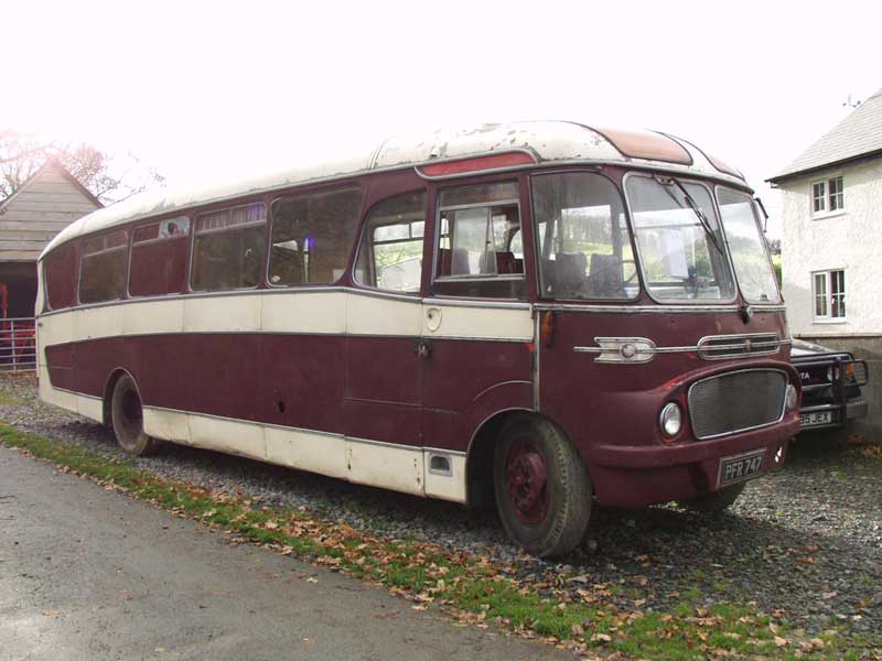 There is no other information to hand regarding PFR 747's further owners or activities. Many so called "light weight" coaches would be expected to have a lifetime not far in excess of 10 years - frequently experiencing rougher and rougher use towards the end. So it was rather surprising to find that by August 1981 PFR 747 had travelled back to the other end of the country and still appeared to be in reasonable condition when it came to rest at Ted Heslops' yard in Hexham. Here it could well have met its end but presumably was deemed too good to scrap. It had lost its petrol engine by the time local man Steve Oliver spotted it in 1990 and decided it was what he wanted for conversion to motor caravan. A Bedford 330 diesel was obtained from Ted and fitted. Technically, this changed PFR from an SB3 to an SB5.