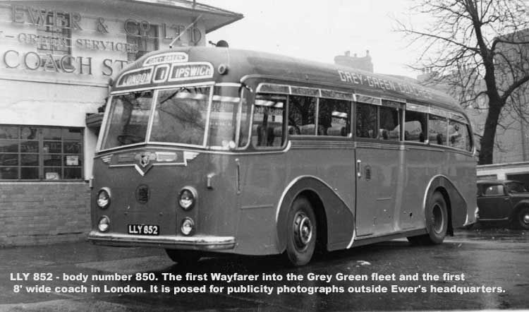 The first often causes argument as to whether it is really a proper coach at all, since it was never used for carrying passengers. The well known Knightrider limousine coach for M&D is body number 885 and is mounted on a Commer front engine chassis. However, apart from the special seating, the body is almost pure Wayfarer and anyone viewing this special order vehicle these days is apt to misunderstand that in fact all the early Wayfarers were pretty much finished to this standard (apart from the seats).